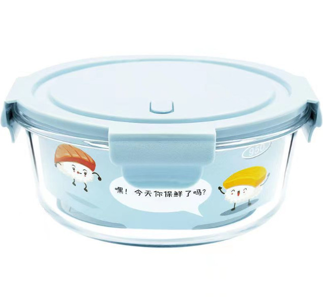 Miska, salaterka ŻAROODPORNA szklana z niebieską pokrywką 14,5x6 cm