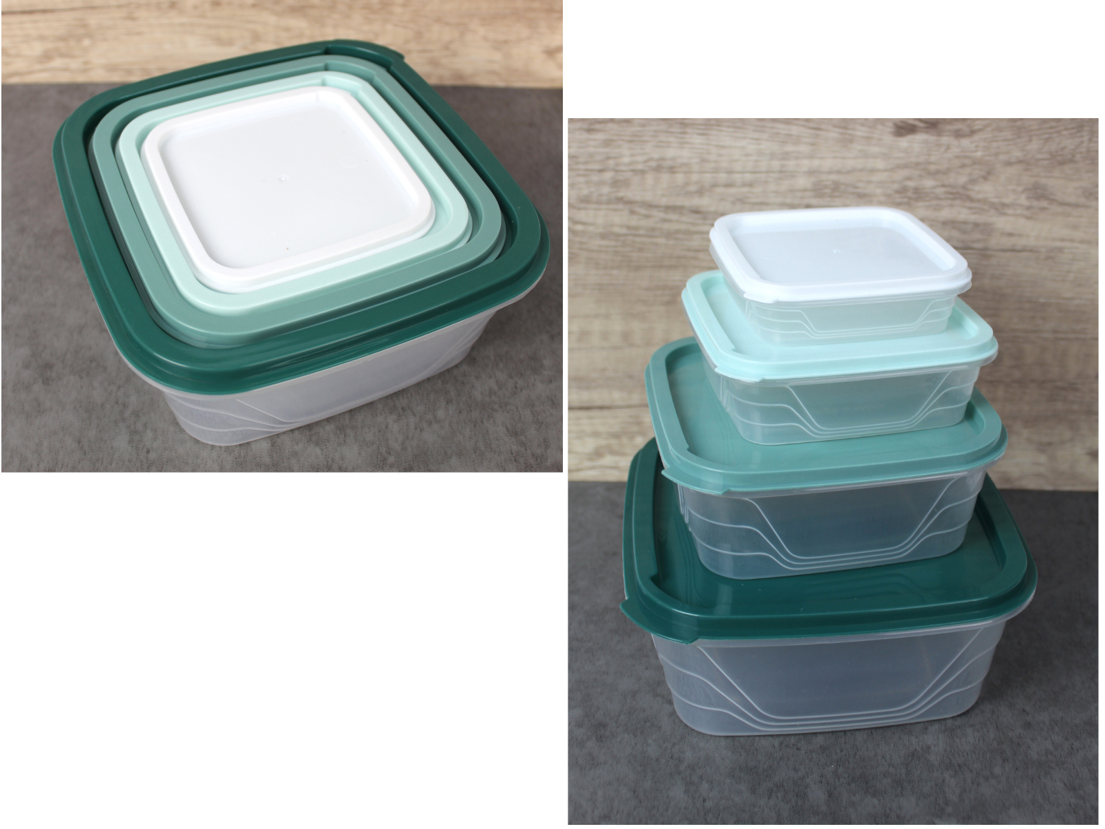 Pojemnik plastikowy, pudełko do przechowywania PROSTOKĄTNY z kolorową z pokrywką - kpl 4 szt