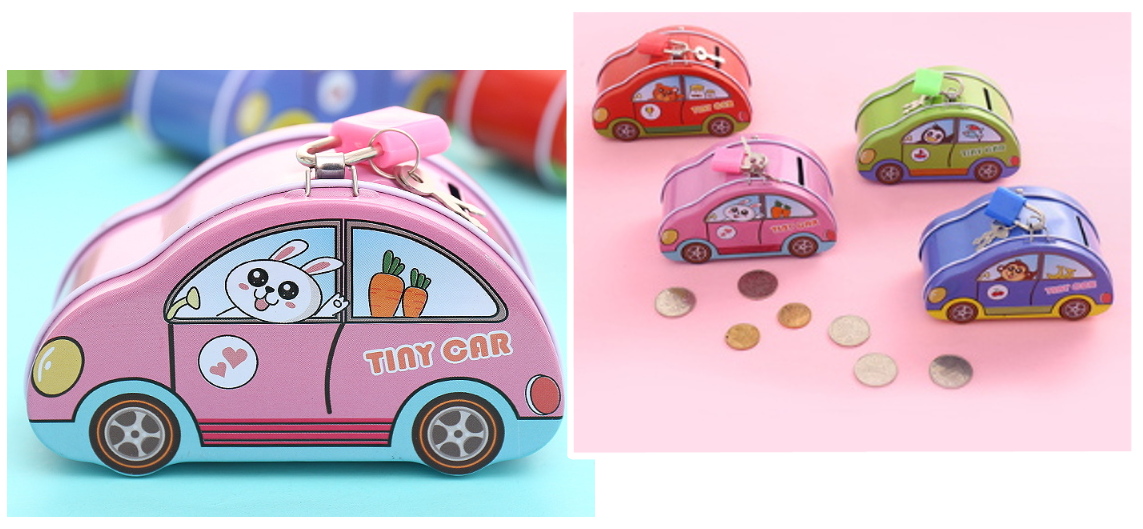 Skarbonka metalowa z kłódką MIX SAMOCHÓD 11x6,5x5,5 cm - 1 szt