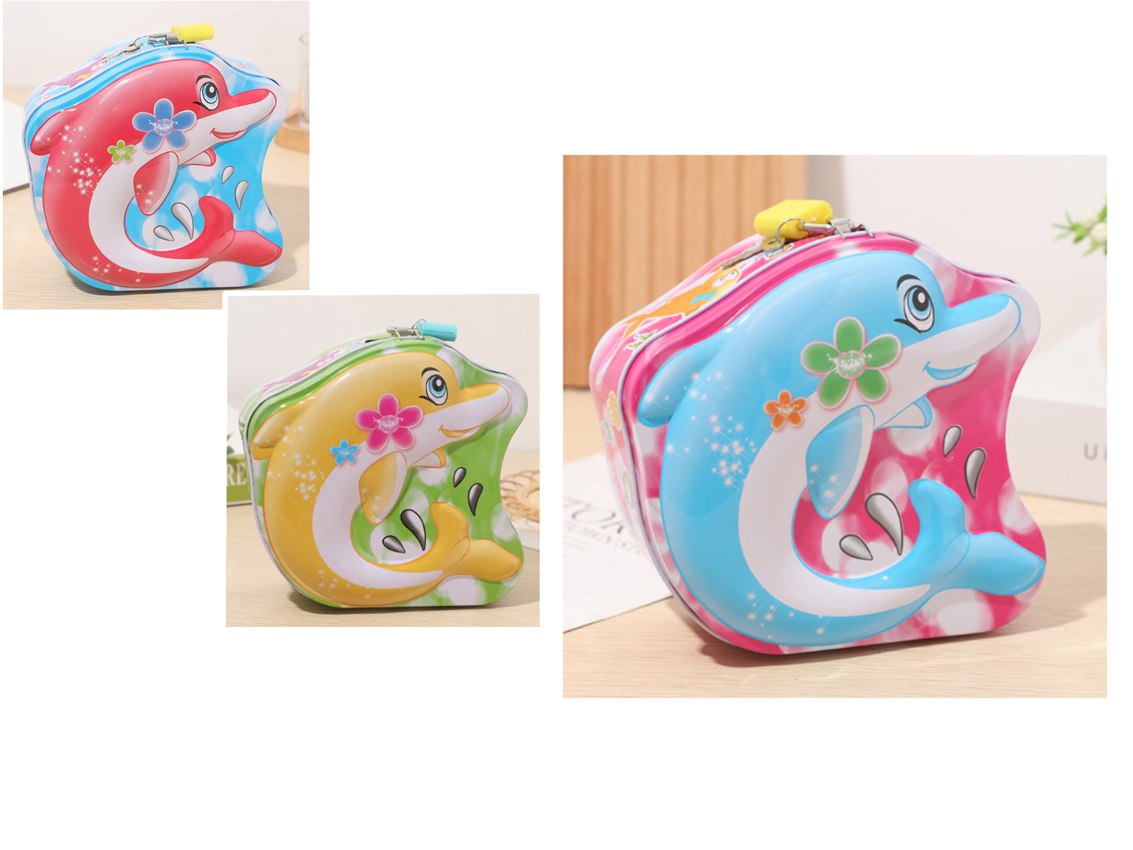 Skarbonka, puszka metalowa DELFIN na kłódę 14x13x6 cm MIX KOLOR