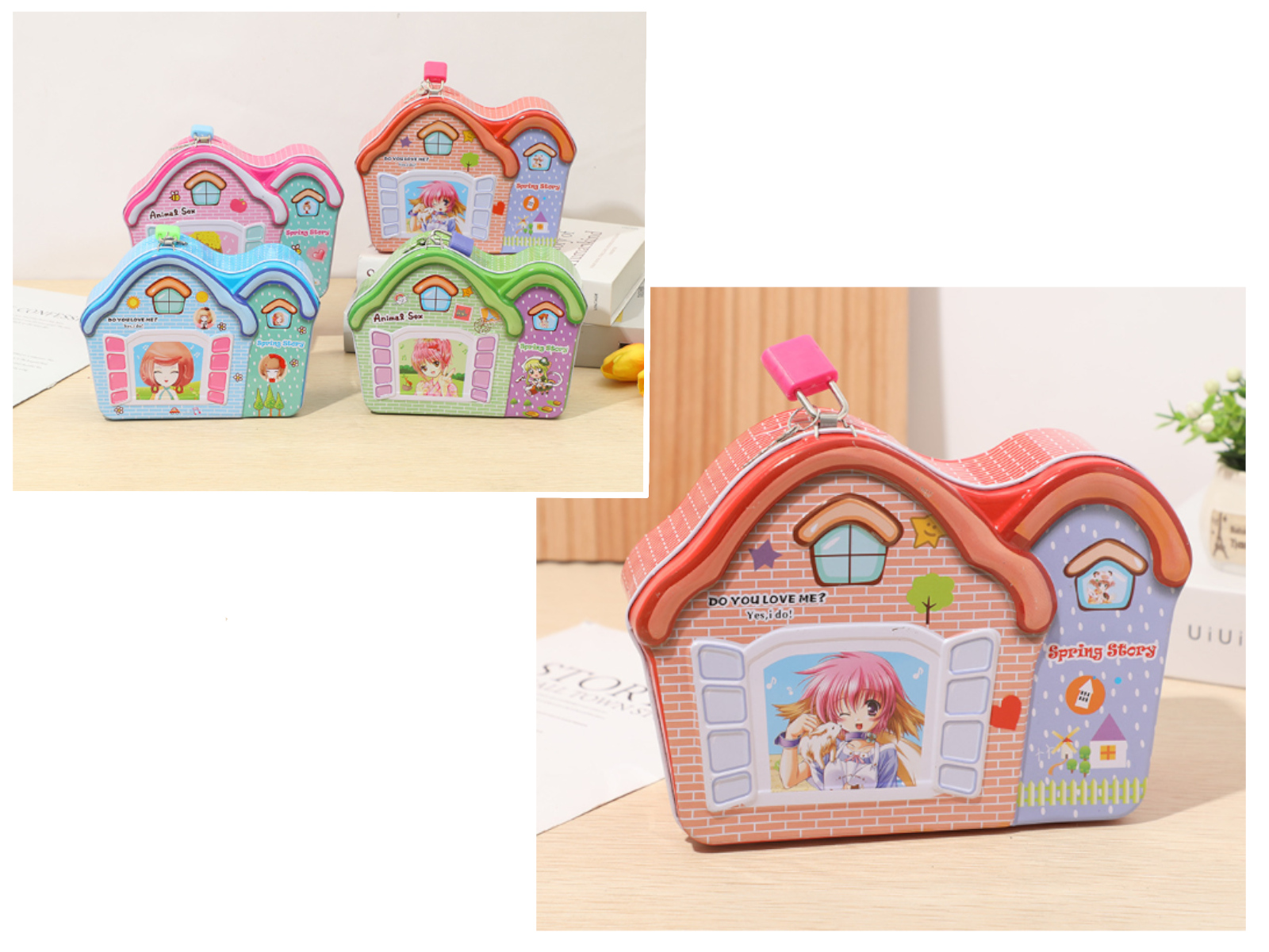 Skarbonka, puszka metalowa DOMEK na kłódkę 18x13x6,5 cm MIX WZORÓW