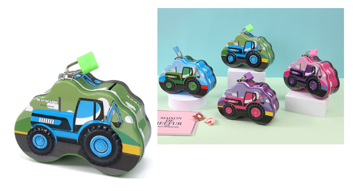 Skarbonka, puszka metalowa TRAKTOR 14x9x5,5 cm MIX KOLOR
