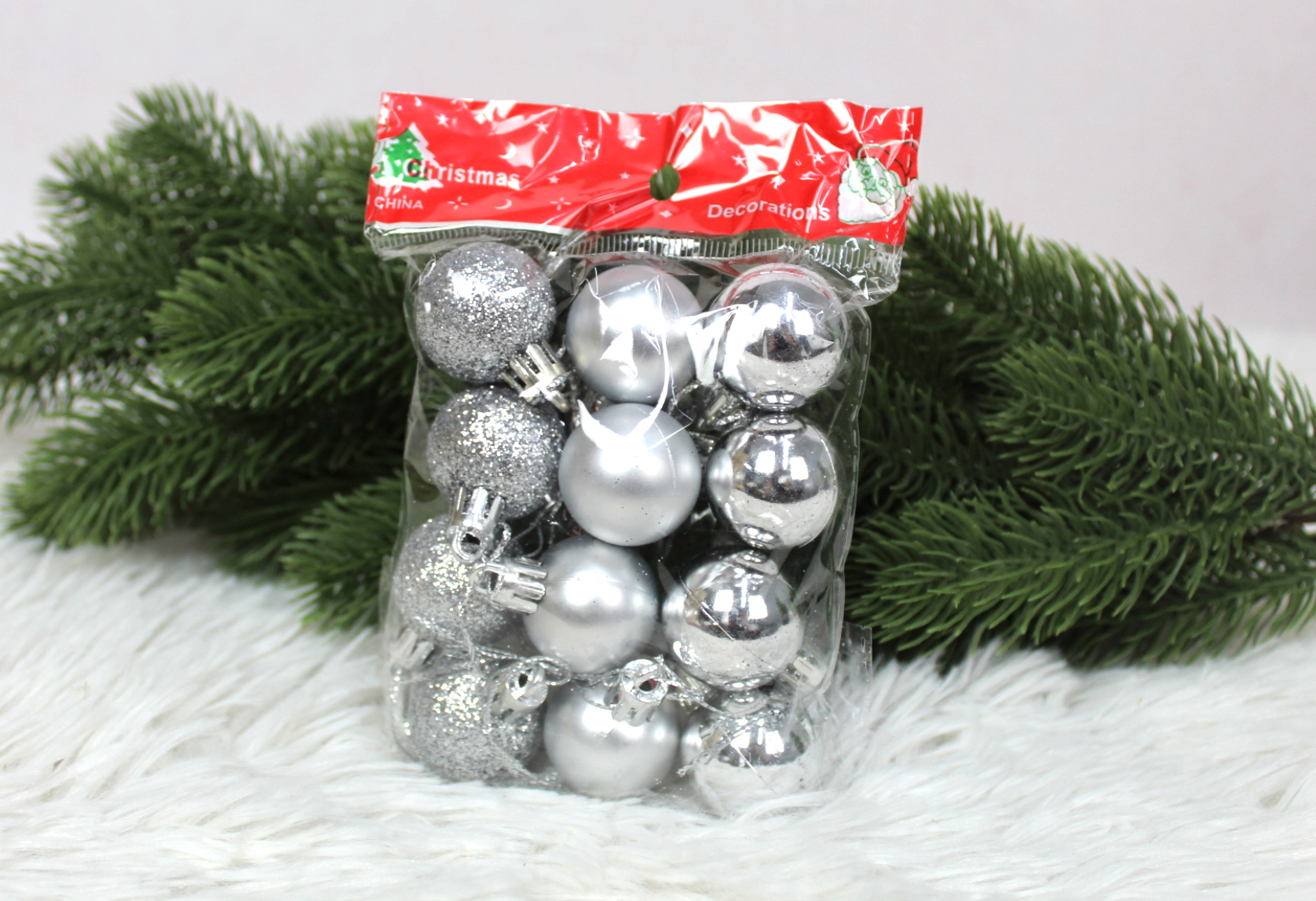 Bombki plastikowe 3 cm SREBRNE kpl. 12 szt