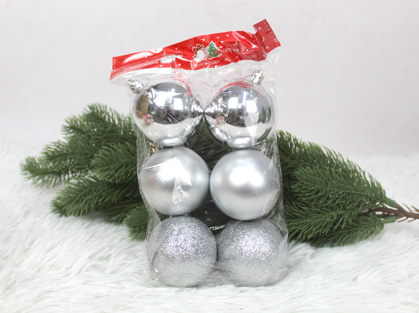 Bombki plastikowe 6 cm SREBRNE kpl. 6 szt