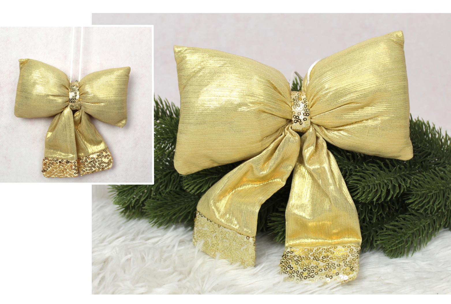 Zawieszka na choinkę pluszowa z cekinami KOKARDA 20x20 cm ZŁOTA