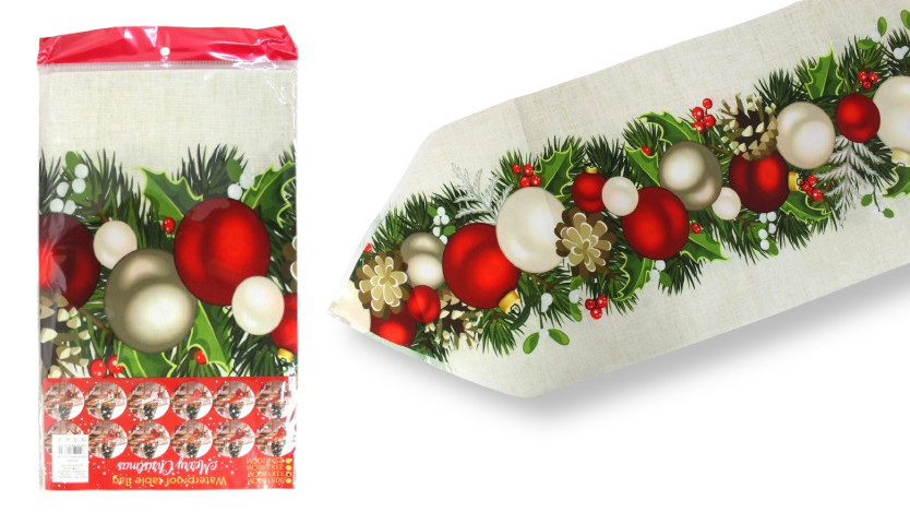 Mata, bieżnik na stół świąteczny, bożonarodzeniowy 180x35 cm BOMBKI