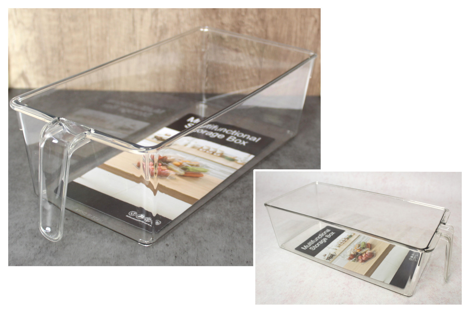 Organizer, wkład do szafki, lodówki z rączką plastik 30x20,5x9,5 cm TRANSPARENTNY