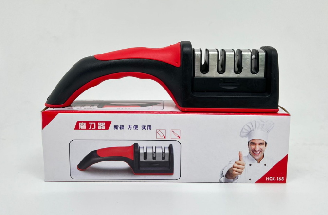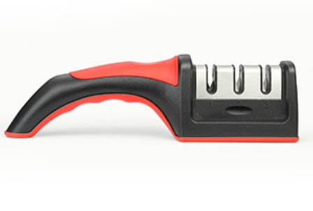 Ostrzałka do noży trzygłowicowa czerwono-czarna 21,5x6x5 cm w folii