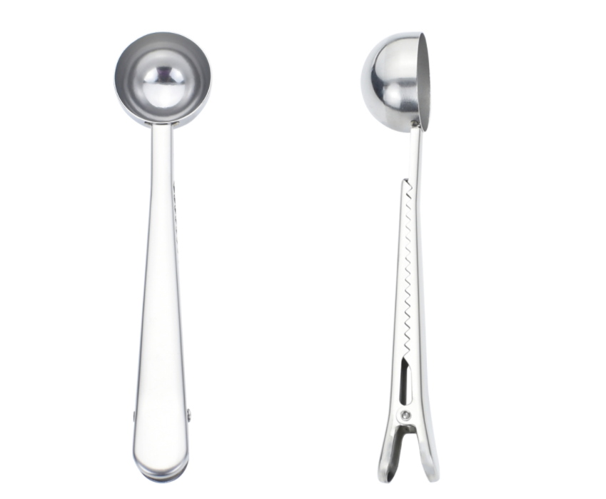 Praktyczna miarka kuchenna ze stali nierdzewnej z klipsem do woreczków 16,5 cm SREBRNA