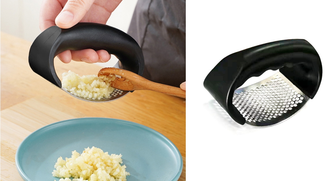 Ręczna prasa do czosnku ze stali nierdzewnej w kształcie łuku 11x6x5 cm