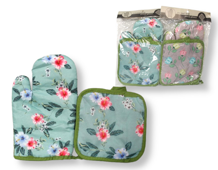 Rękawica kuchenna 25x16 cm + podkładka 16x16 cm KWIATY MIX