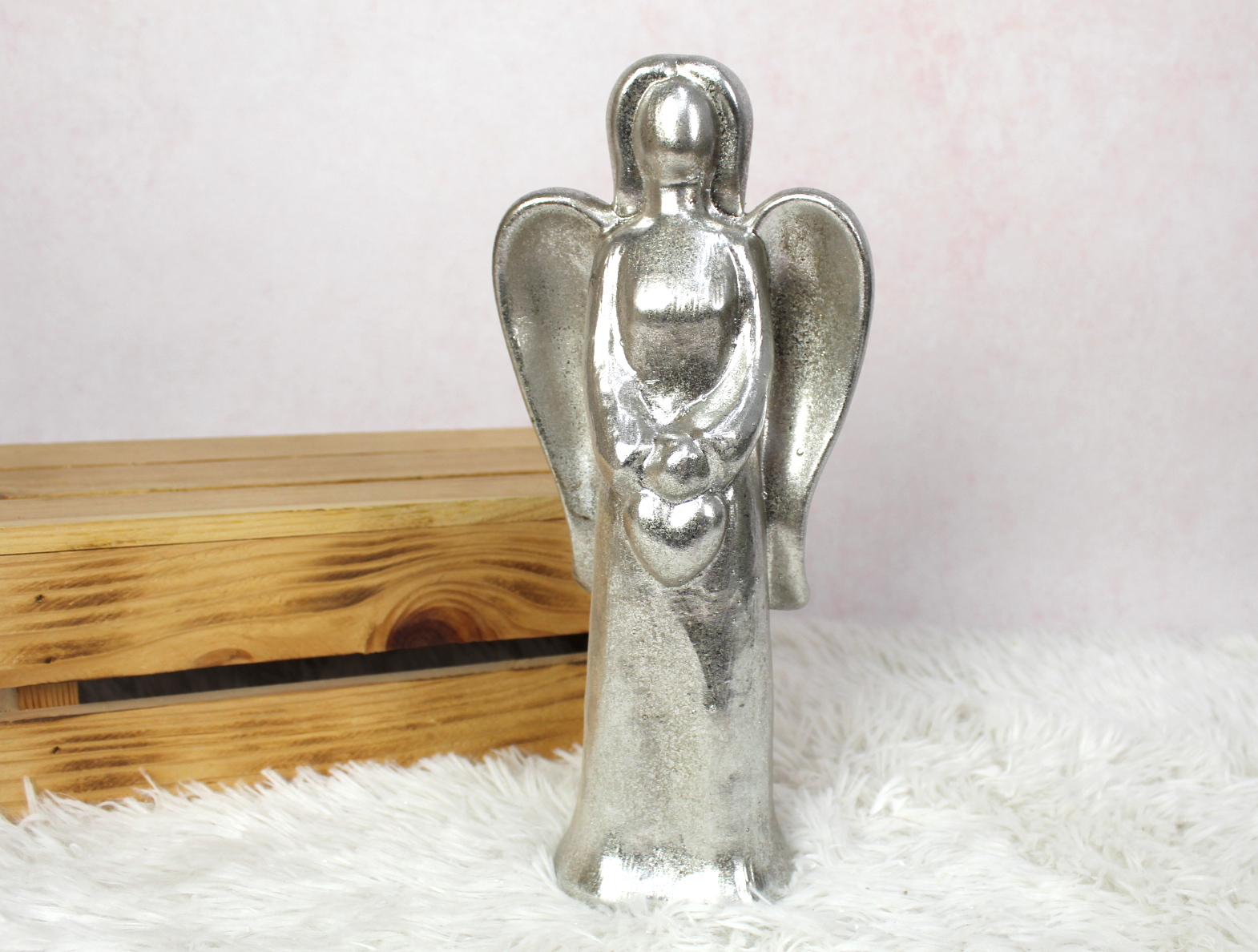 Figurka ceramiczna ANIOŁEK 30 cm SREBRNY