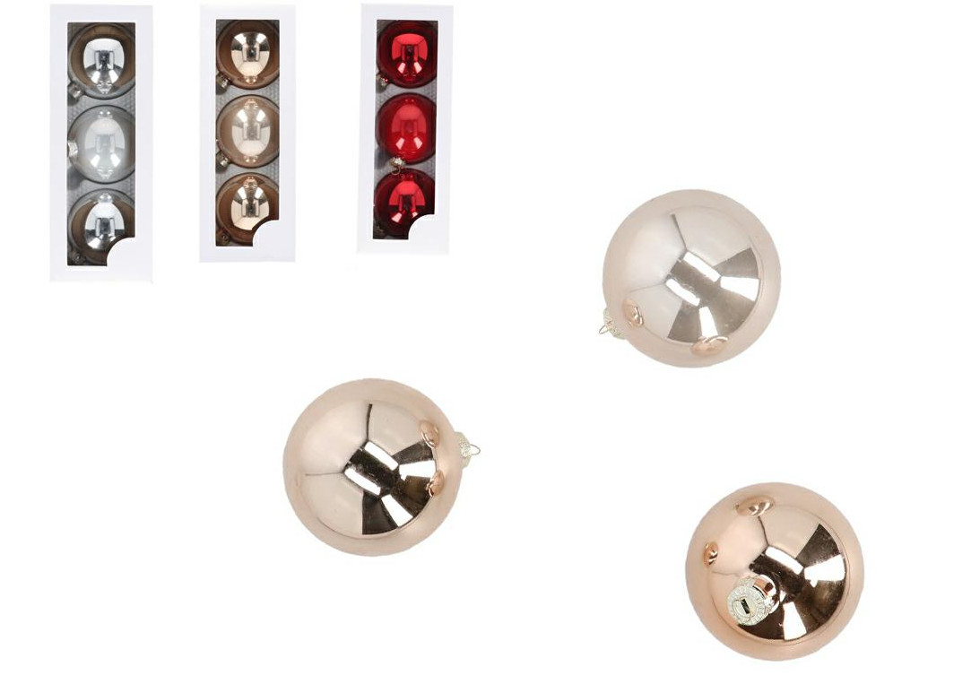 Bombka szklana 8 cm - kpl 3 szt złota, srebrna, czerwona mix