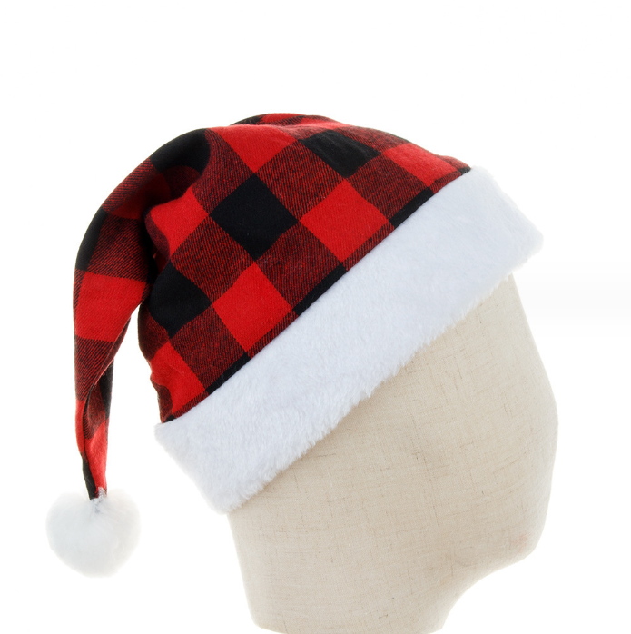 Czapka Świętego Mikołaja KRATA 40x29 cm CZERWONO - CZARNA