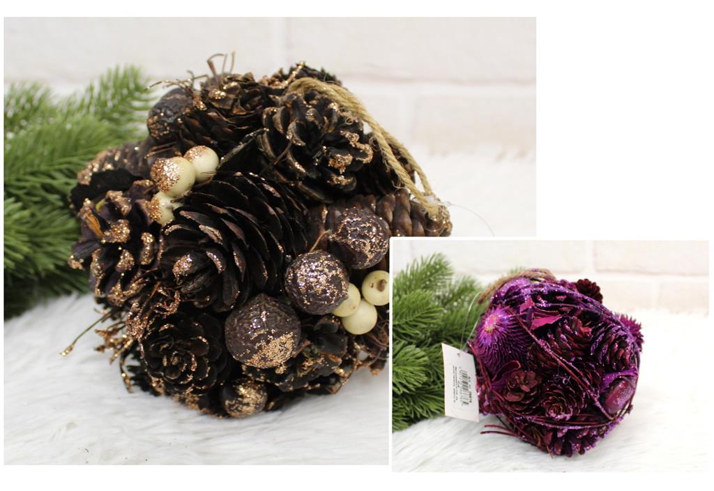 Dekoracja wisząca kula z SZYSZEK 13 cm mix kolor