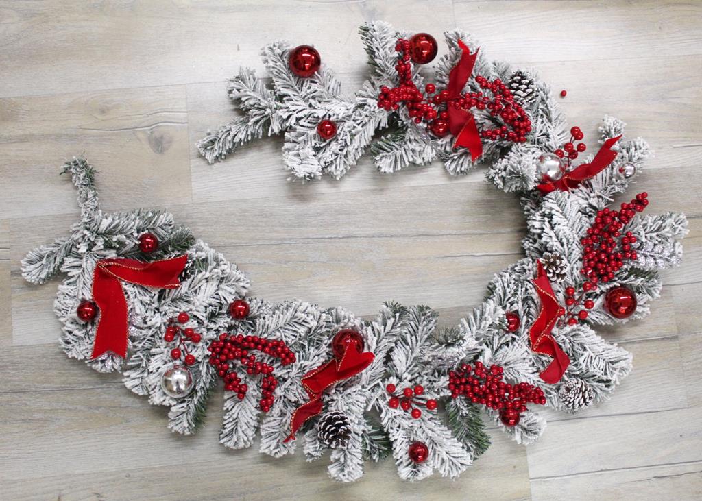 Girlanda świąteczna z kokardą i bombkami 160 cm SREBRNO CZERWONA