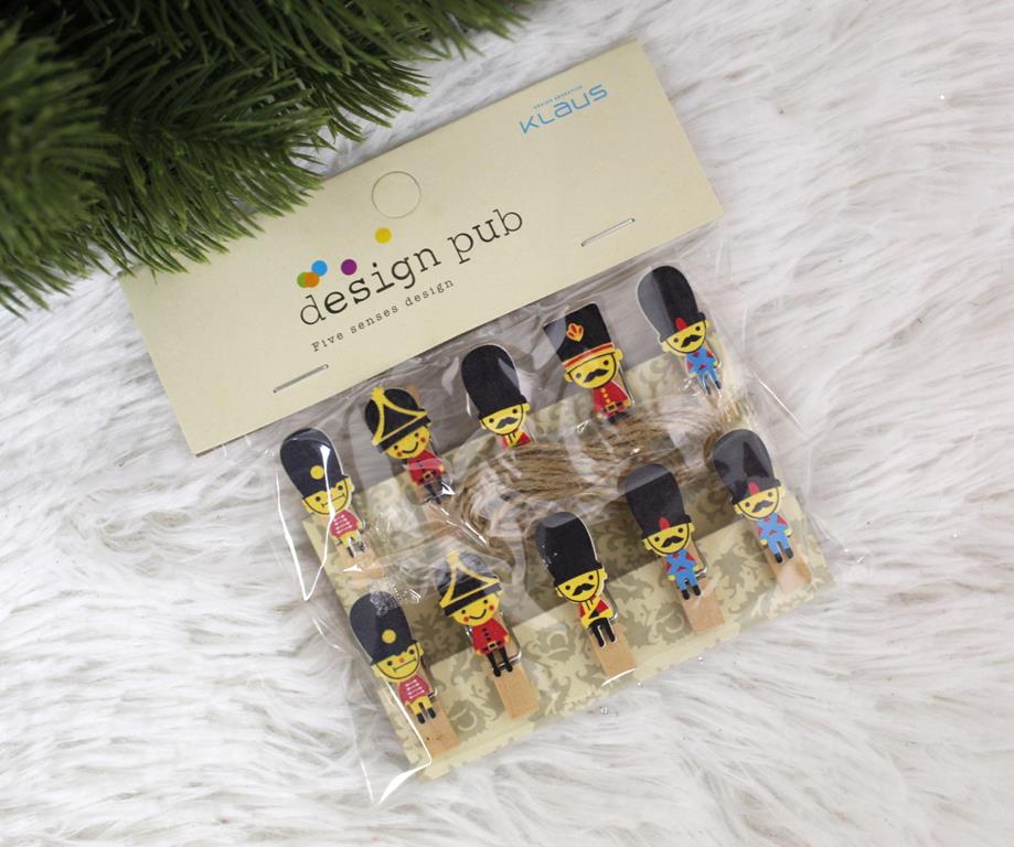 Klipsy, klamerki ozdobne świąteczne ŻOŁNIERZ drewniane kpl 10 szt 3,5 cm