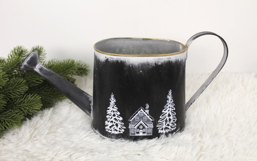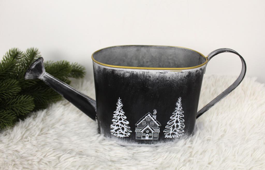Metalowa KONEWKA zimowy wzór 37x18x10 cm - CZARNA