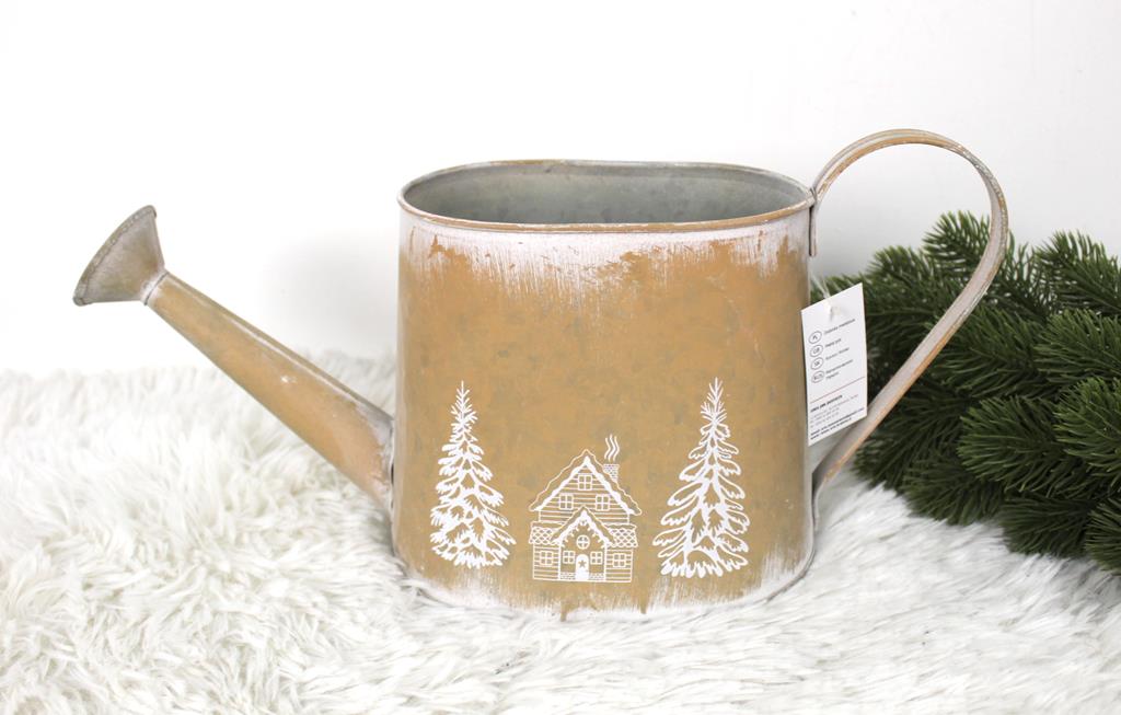 Metalowa KONEWKA zimowy wzór 37x18x10 cm - KREMOWA