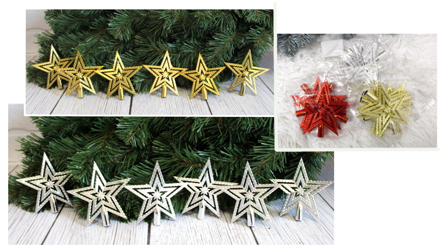 Gwiazda plastik na czubek choinki 10x10 cm mix kolor - kpl 6 szt