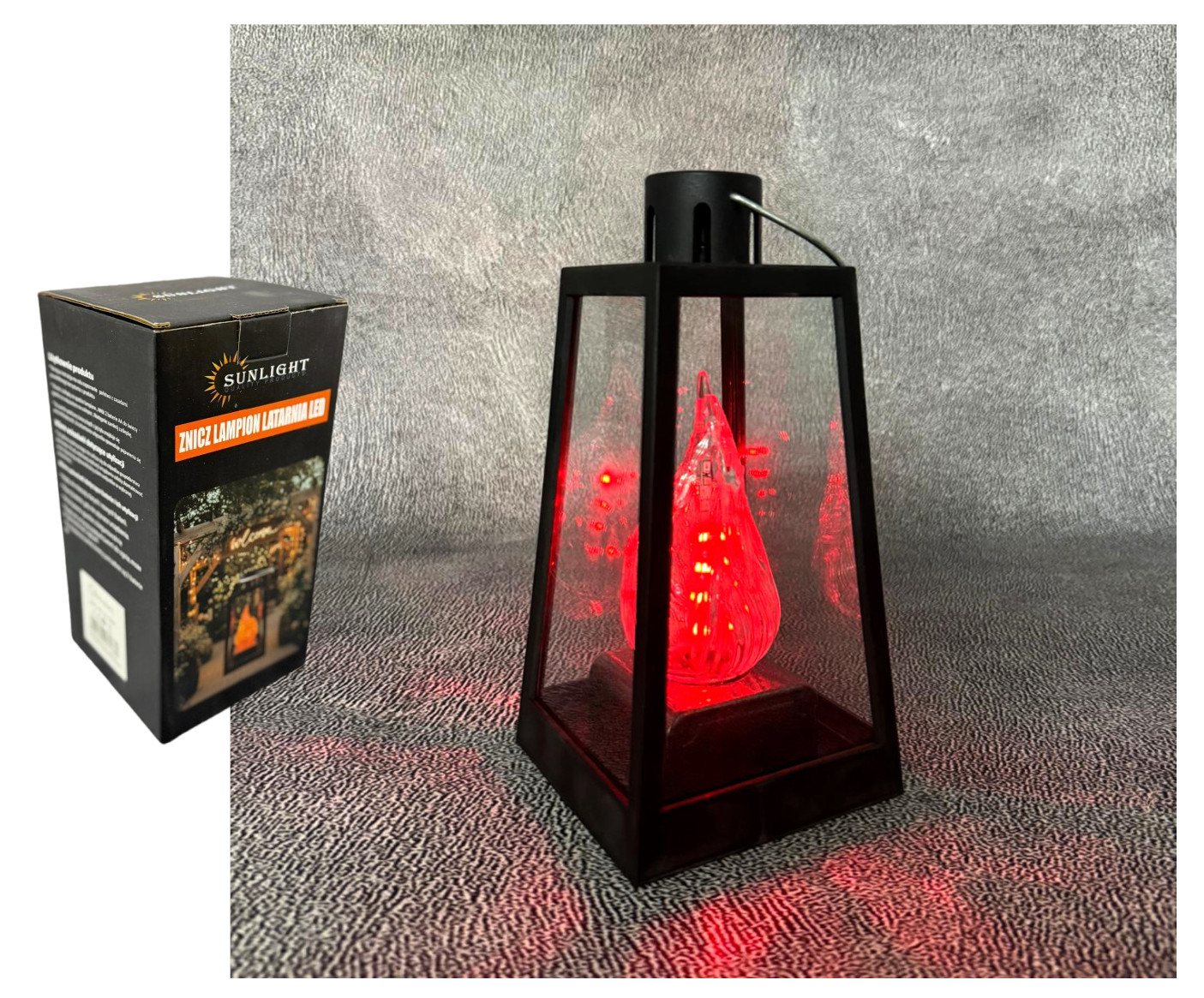 Znicz, lampion, latarnia LED plastik TRAPEZ z płomieniem wieloledowym CZERWONY 27,5x11x11 cm A7166R