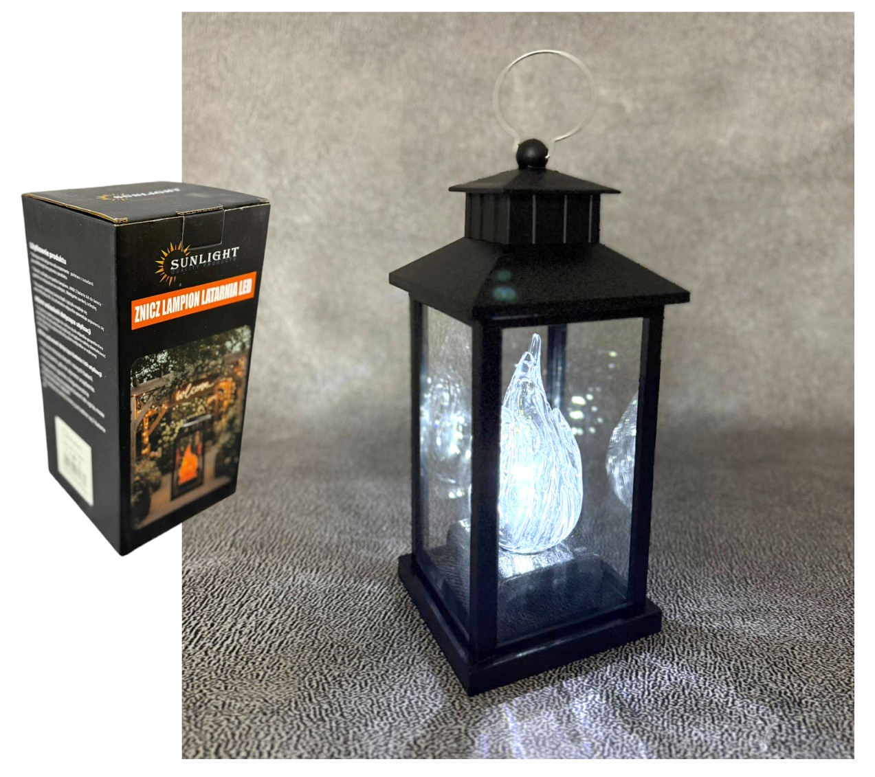 Znicz, lampion, latarnia LED plastik PROSTOKĄT z płomieniem wieloledowym ZIMNY BIAŁY 28,5x11x11 cm A7165W