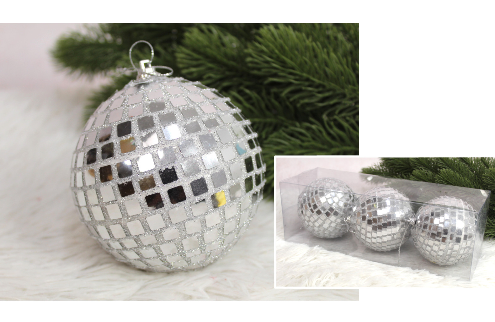 Bombki kula disco 10 cm SREBRNE kpl. 3 szt