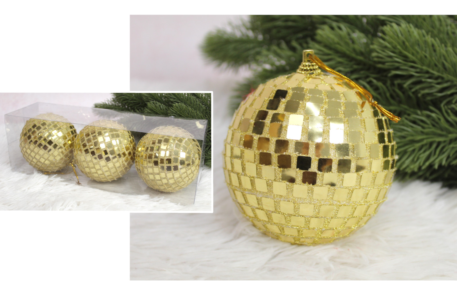 Bombki kula disco 8 cm ZŁOTE kpl. 3 szt