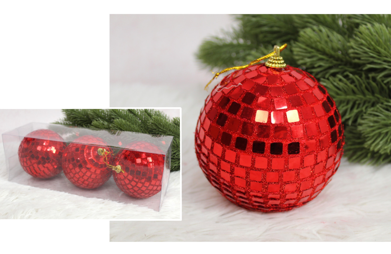 Bombki kula disco 10 cm CZERWONE kpl. 3 szt