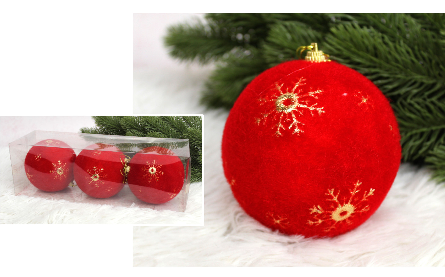 Bombki ŚNIEŻYNKI flokowane 10 cm CZERWONE kpl. 3 szt
