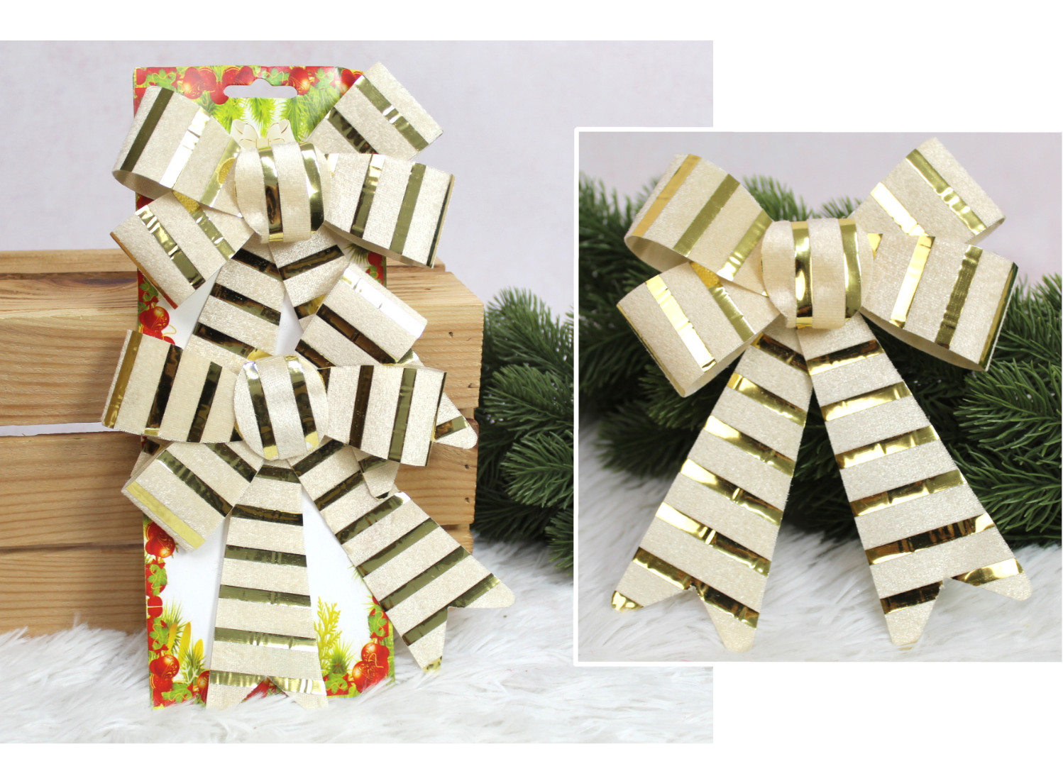 Kokardki świąteczne 18x14 cm ZŁOTE w złote pasy kpl 2 szt