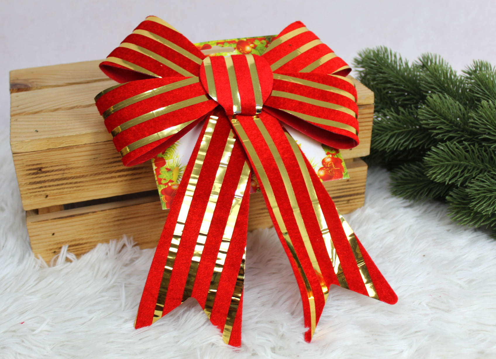 Kokardka świąteczna 28x20 cm CZERWONE w złote pasy