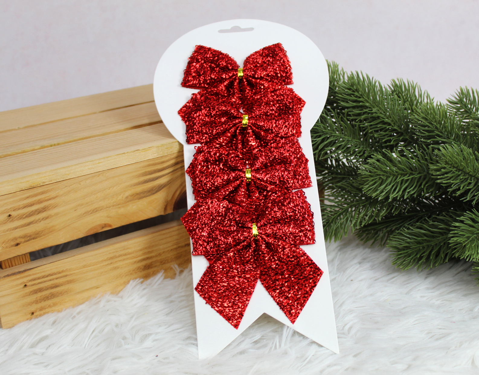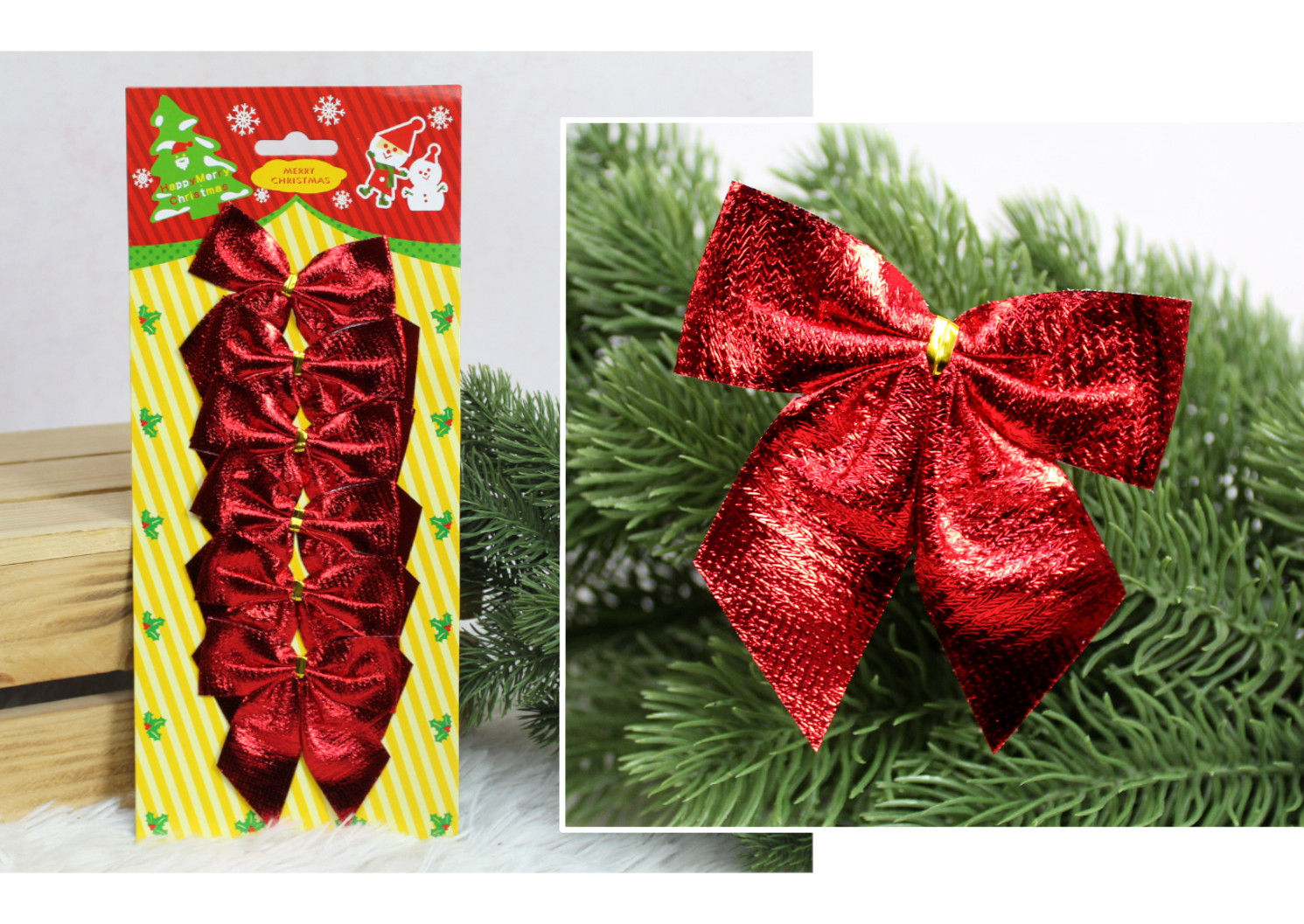 Kokardki świąteczne 8x7 cm CZERWONE kpl 6 szt