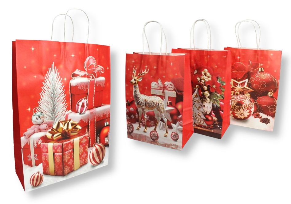 Torba prezentowa ŚWIĄTECZNY WZÓR papierowa 25,5x18,5x9,5 cm CZERWONA