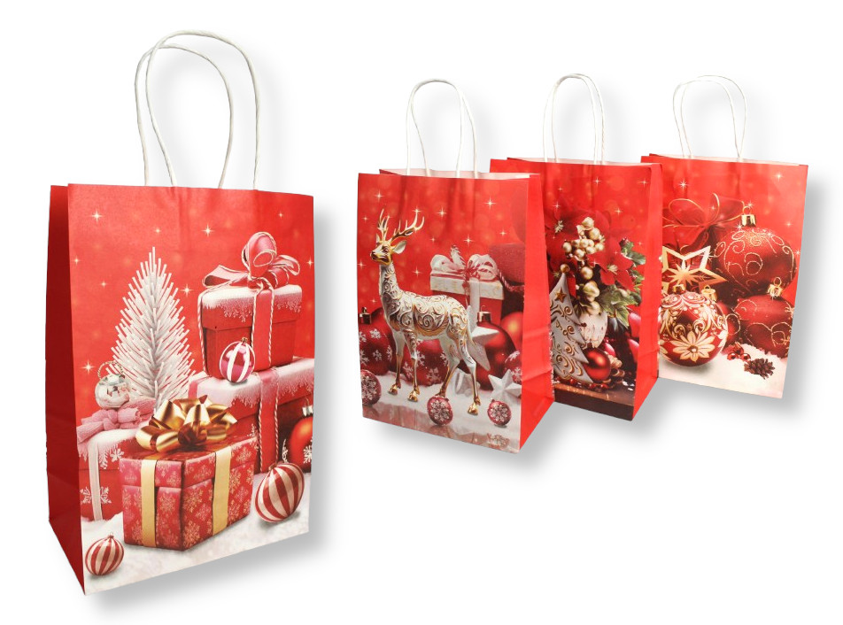 Torba prezentowa ŚWIĄTECZNY WZÓR papierowa 21x18x15 cm CZERWONA