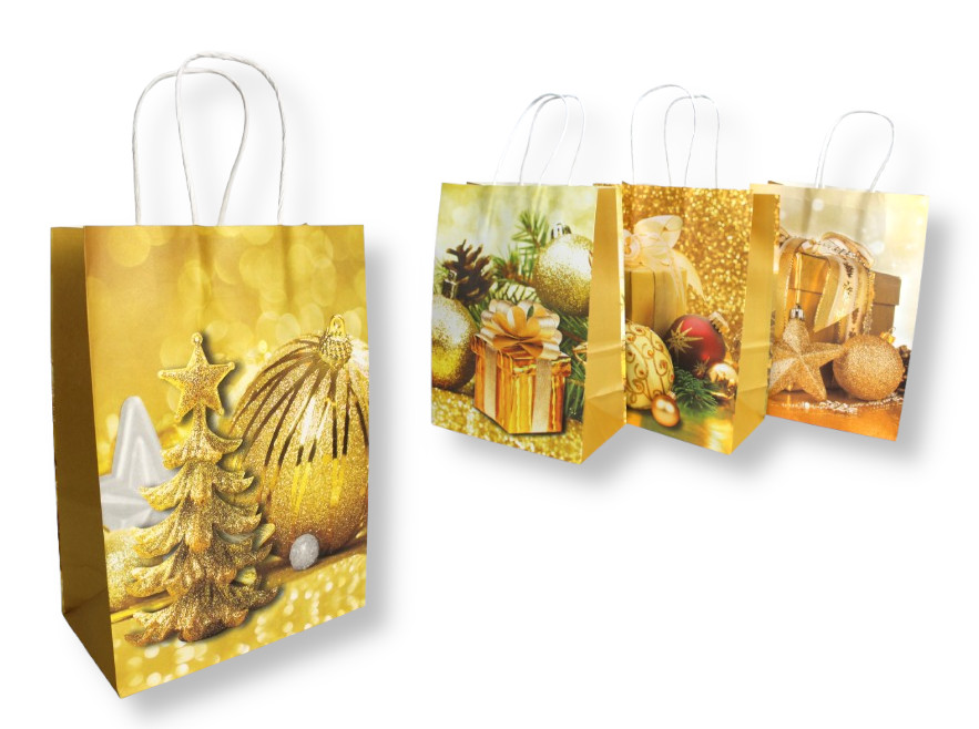 Torba prezentowa ŚWIĄTECZNY WZÓR papierowa 21x18x15 cm ZŁOTA