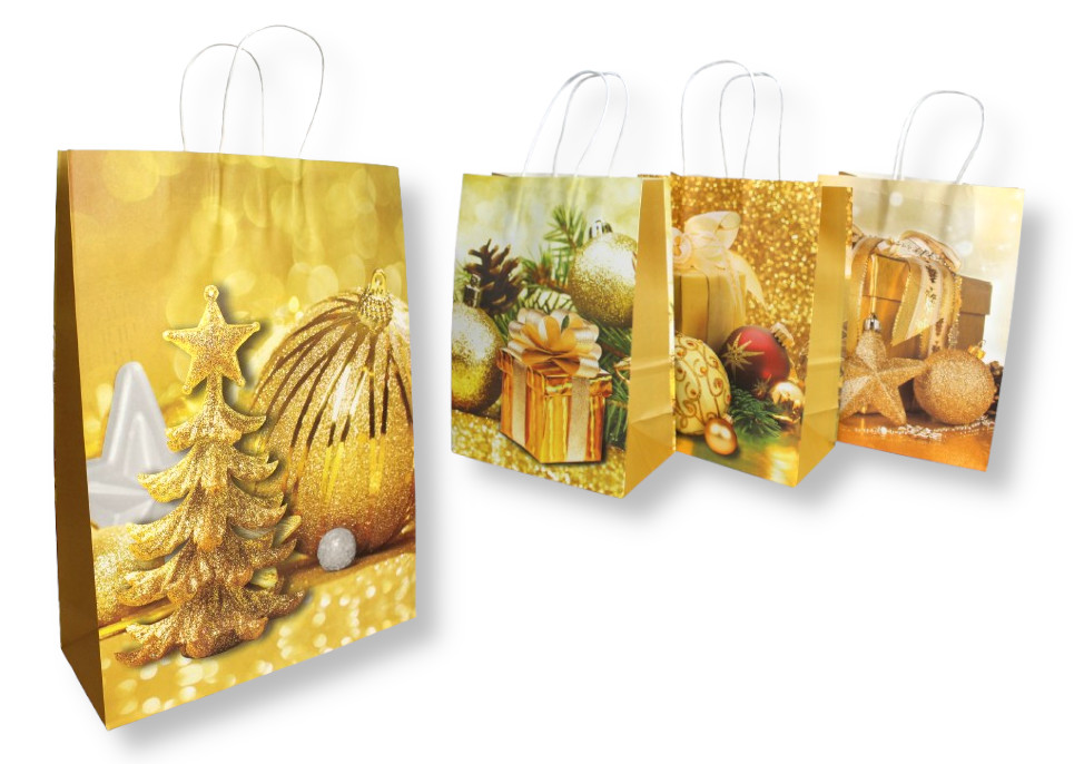 Torba prezentowa ŚWIĄTECZNY WZÓR papierowa 33x25,5x12,5 cm ZŁOTA
