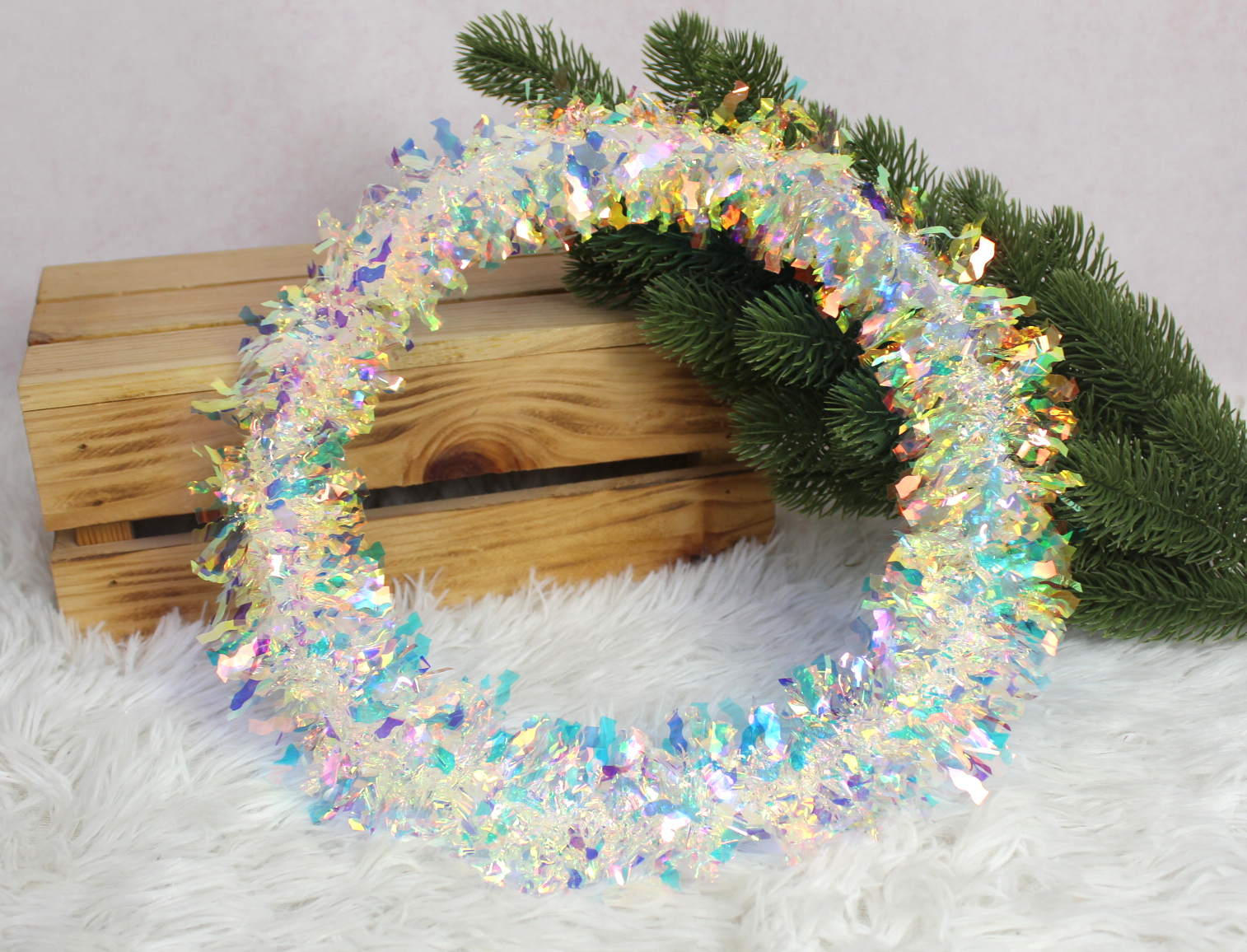 Wieniec wianek dekoracyjny holograficzny z łańcucha 25x7 cm