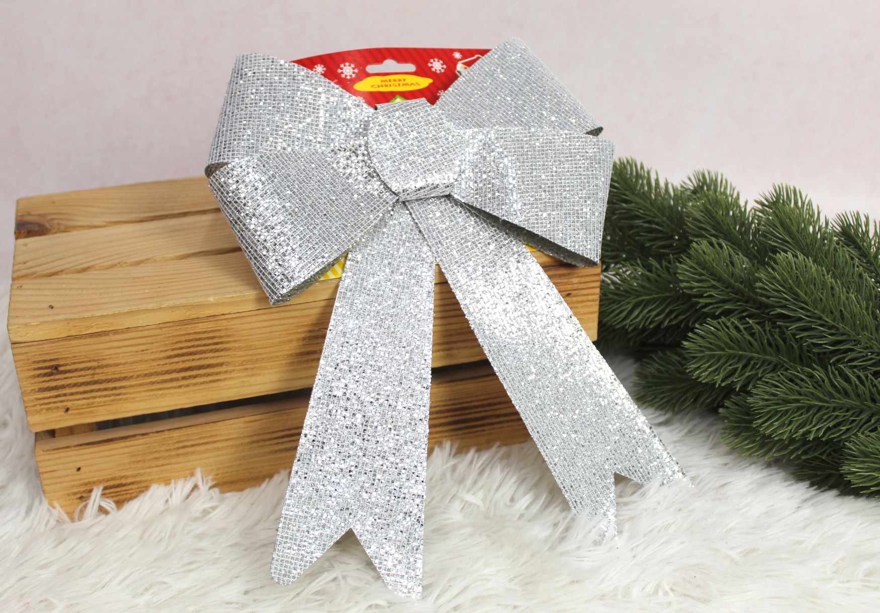 Zawieszka na choinkę KOKARDA 30x20 cm SREBRNA