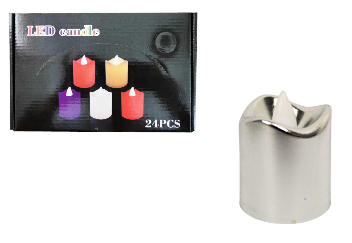 Świeca, świeczka LED na baterie ze stałym płomieniem światło ciepłe 4,6x3,6 cm SREBRNA - 1 szt