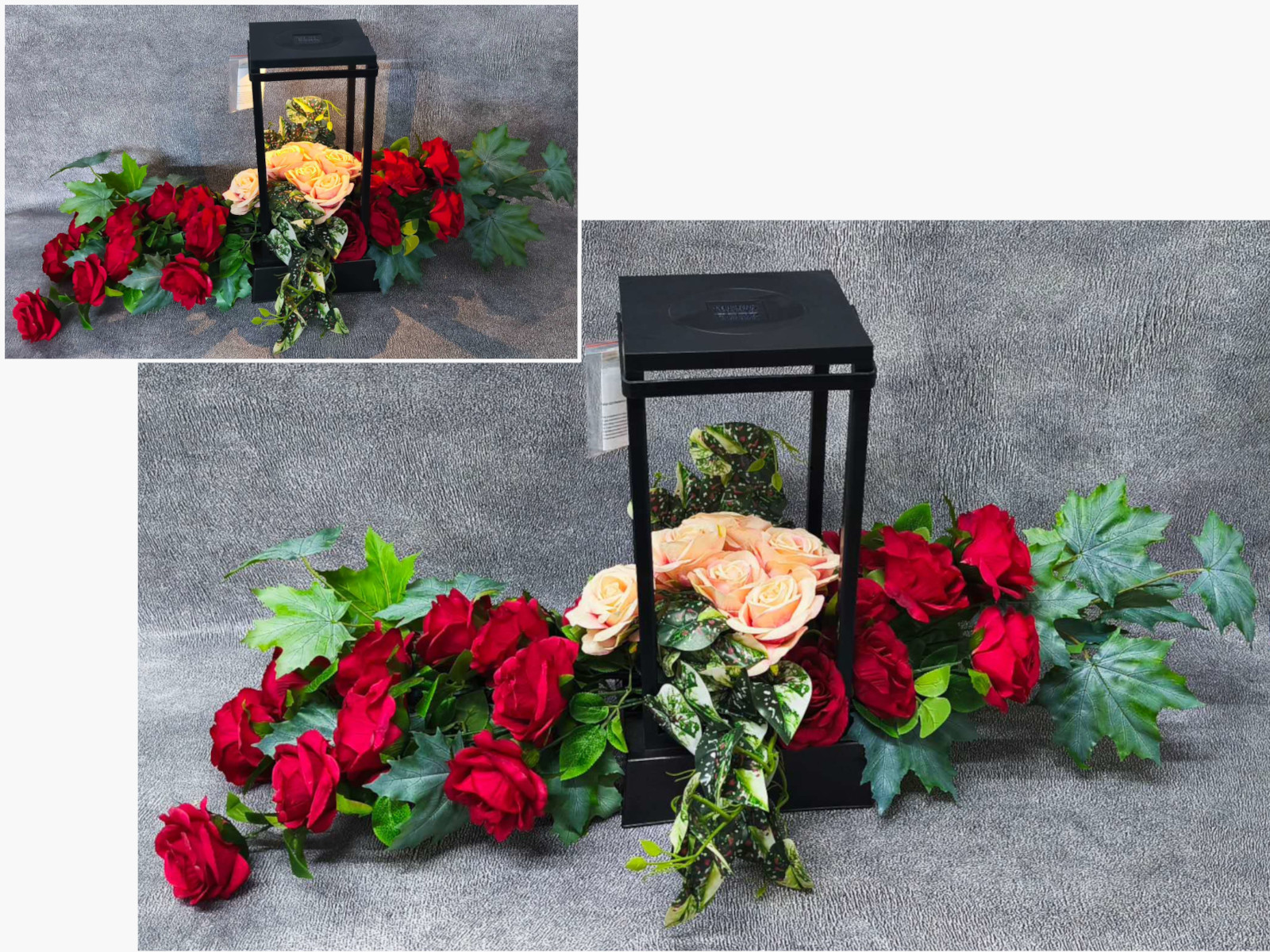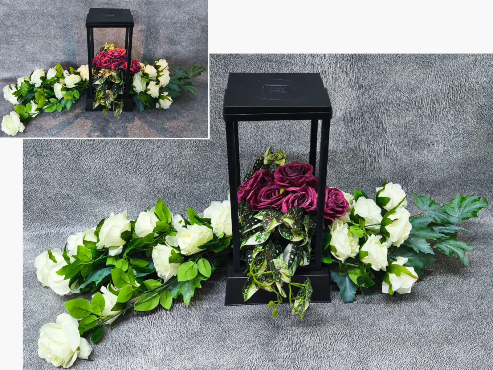 Stroik zalewany DUŻE RÓŻE zwis BIAŁY + BORDO + LATARNIA DUŻA solar (48x20x20 cm + ok. 105x75 cm) 4 kg
