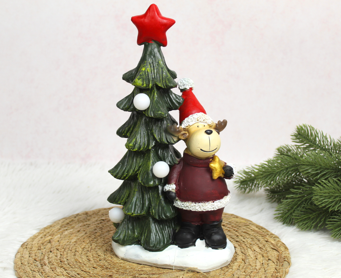 Figurka ceramiczna CHOINKA z reniferem świecąca LED 28x14x9,5 cm (99306-3)