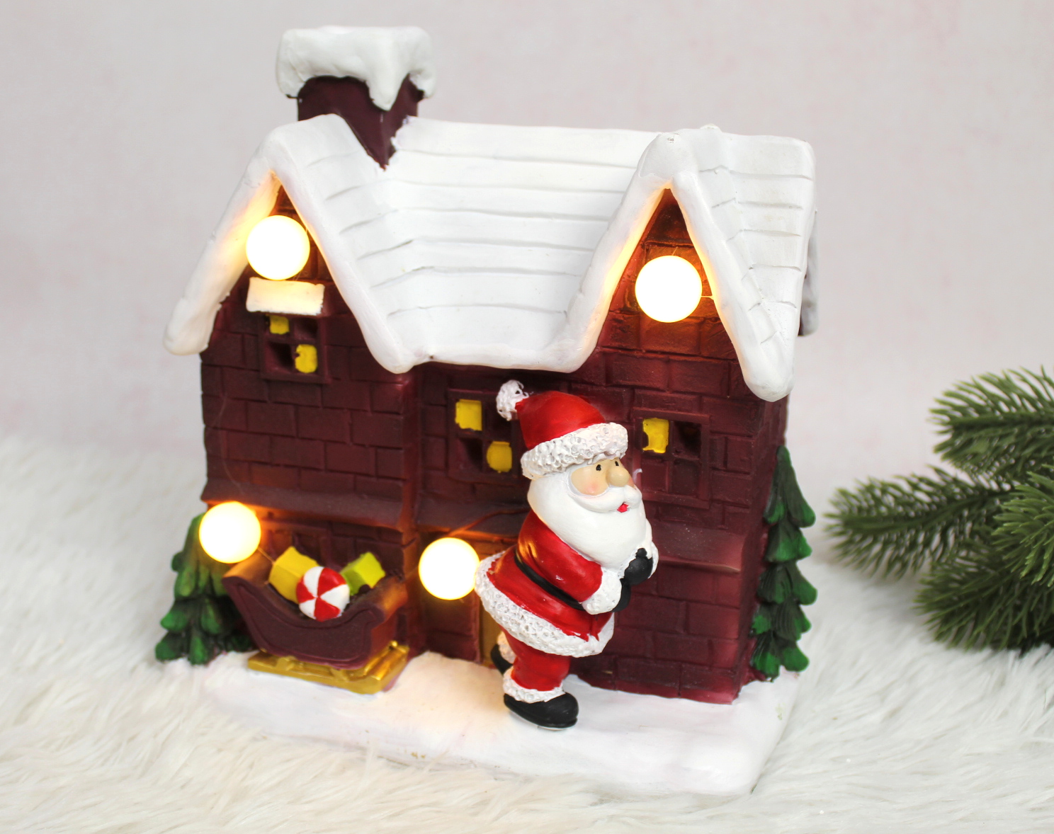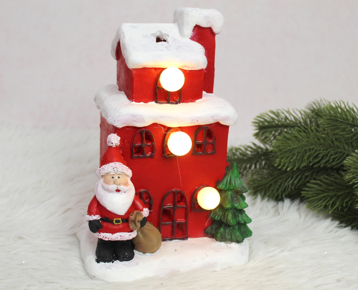 Figurka ceramiczna MIKOŁAJ z choinką i prezentem świecący LED 15x8x7 cm (29547-3)