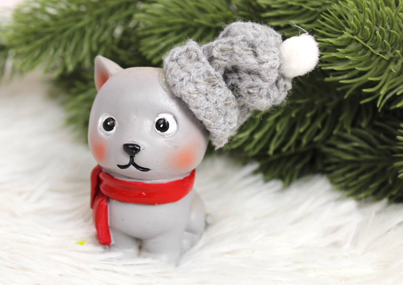 Figurka ceramiczna KOTEK w wełnianej czapce 9x5x4,5 cm (16211-1)