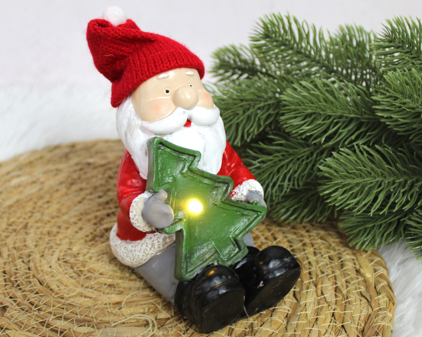 Figurka ceramiczna MIKOŁAJ trzymający choinkę świecący LED 15x11x8 cm (32240-1)