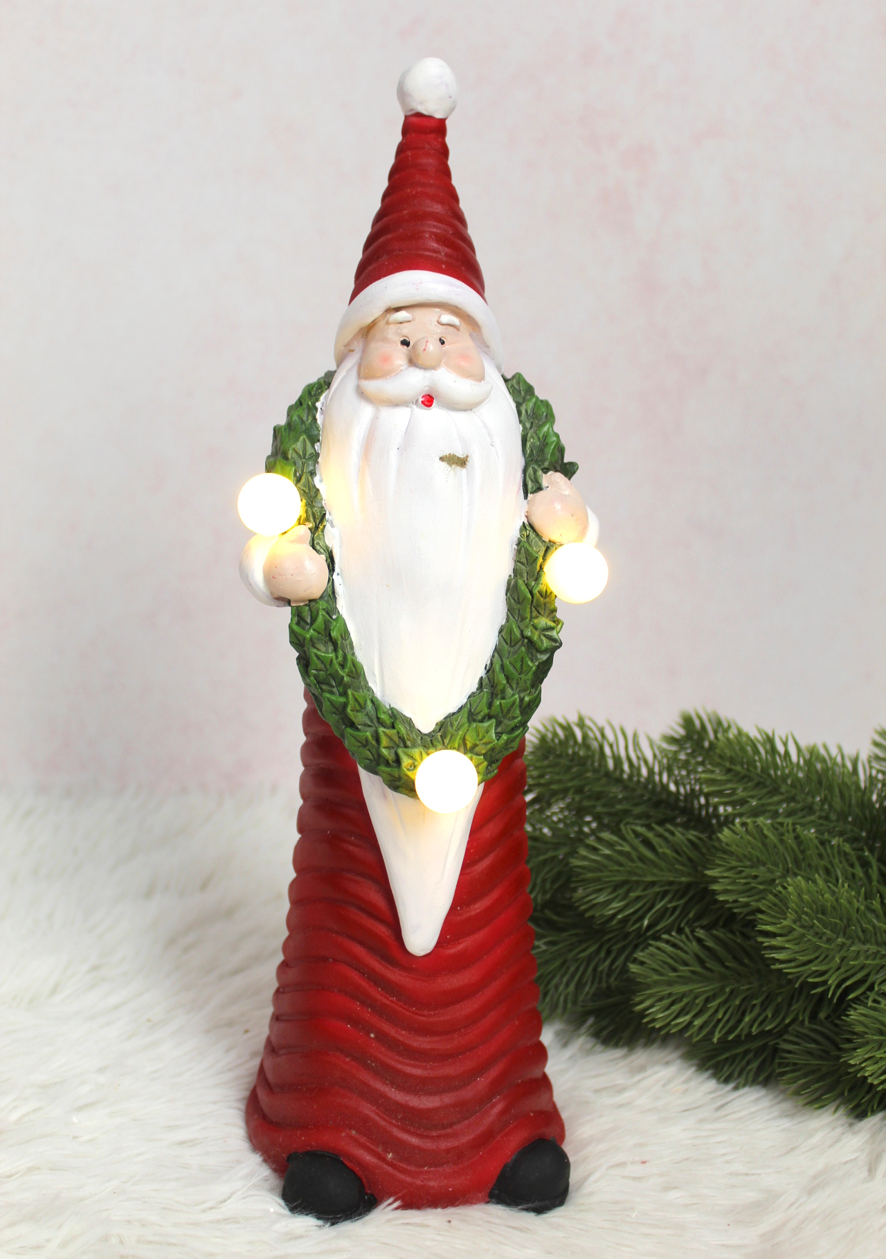 Figurka ceramiczna MIKOŁAJ z wieńcem na szyi świecący LED 35 cm (32325-1)