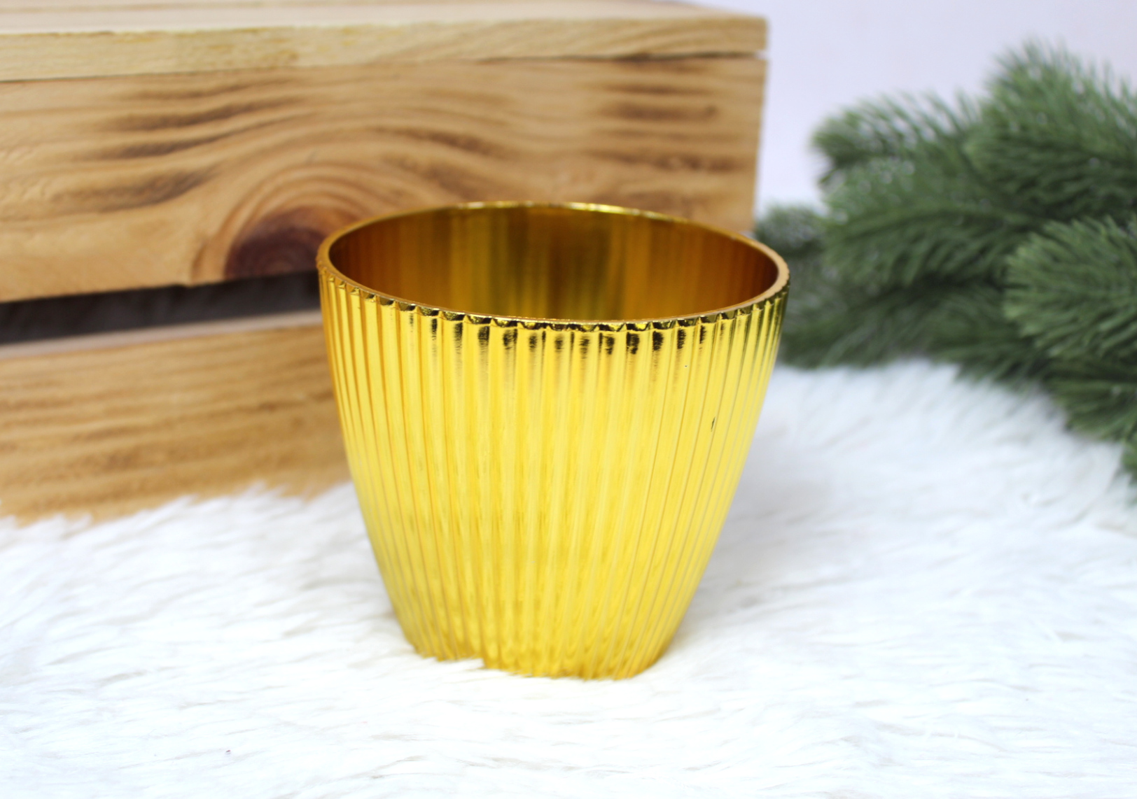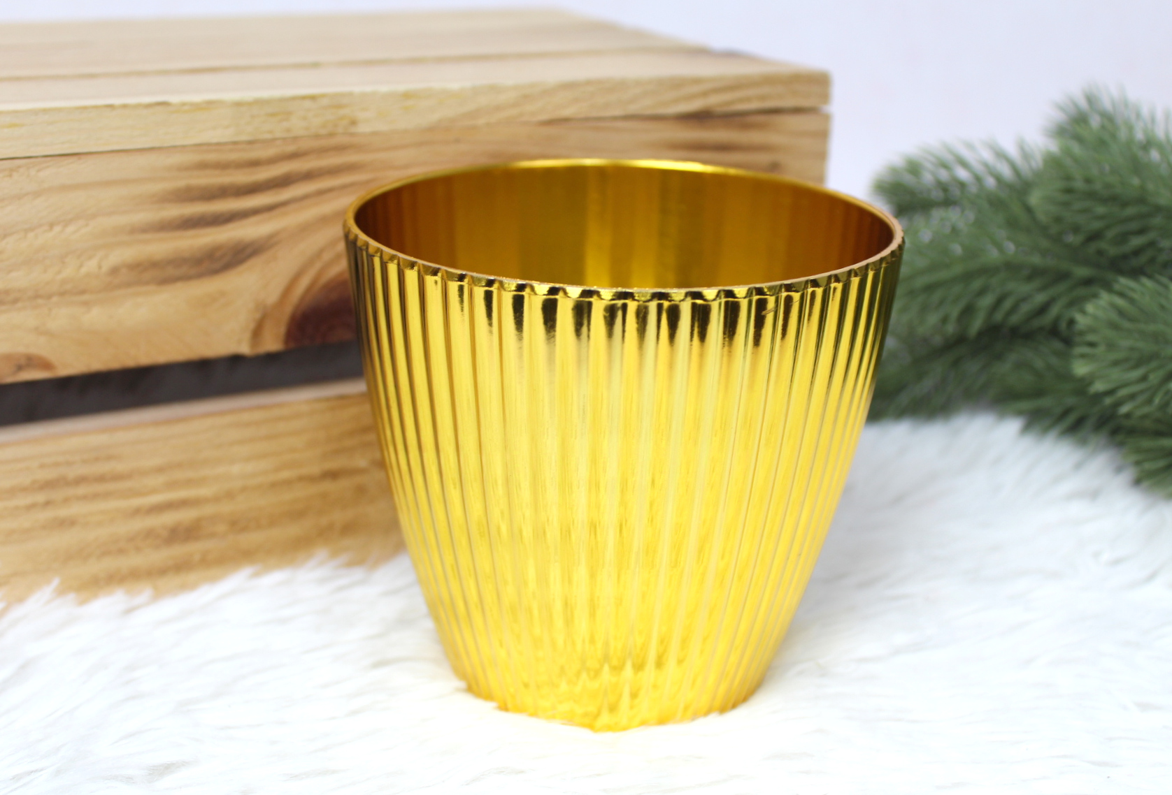 l Osłonka, doniczka dekoracyjna karbowana ZŁOTA plastik 9x8,5 cm
