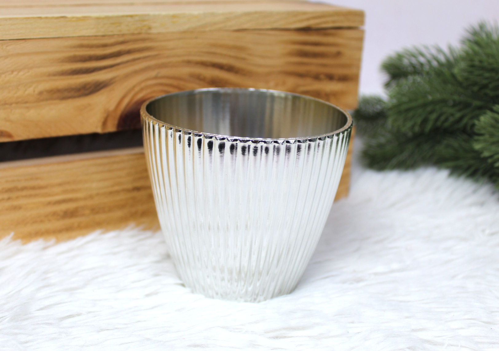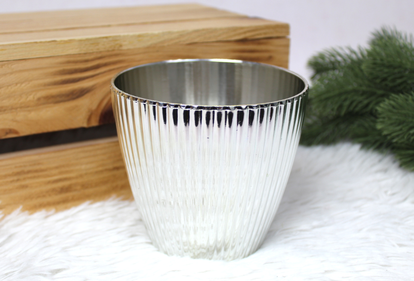 l Osłonka, doniczka dekoracyjna karbowana SREBRNA plastik 9x8,5 cm