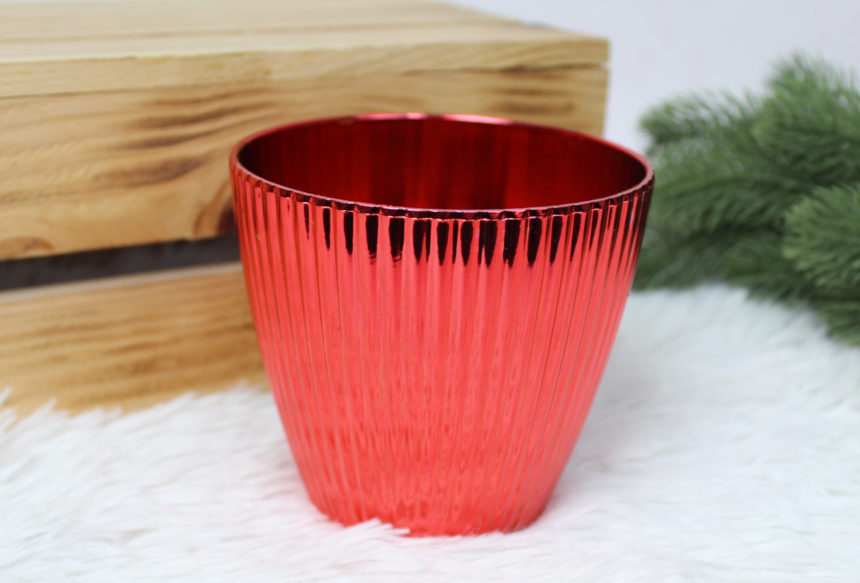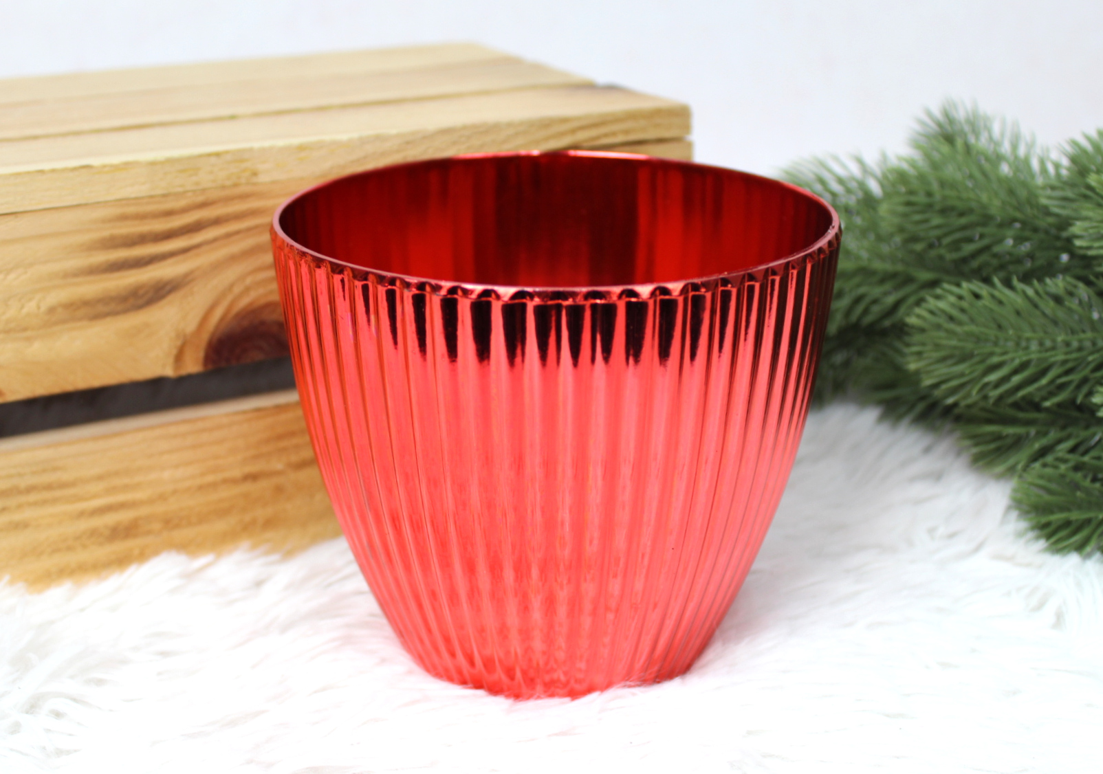 l Osłonka, doniczka dekoracyjna karbowanaCZERWONA plastik 9x8,5 cm