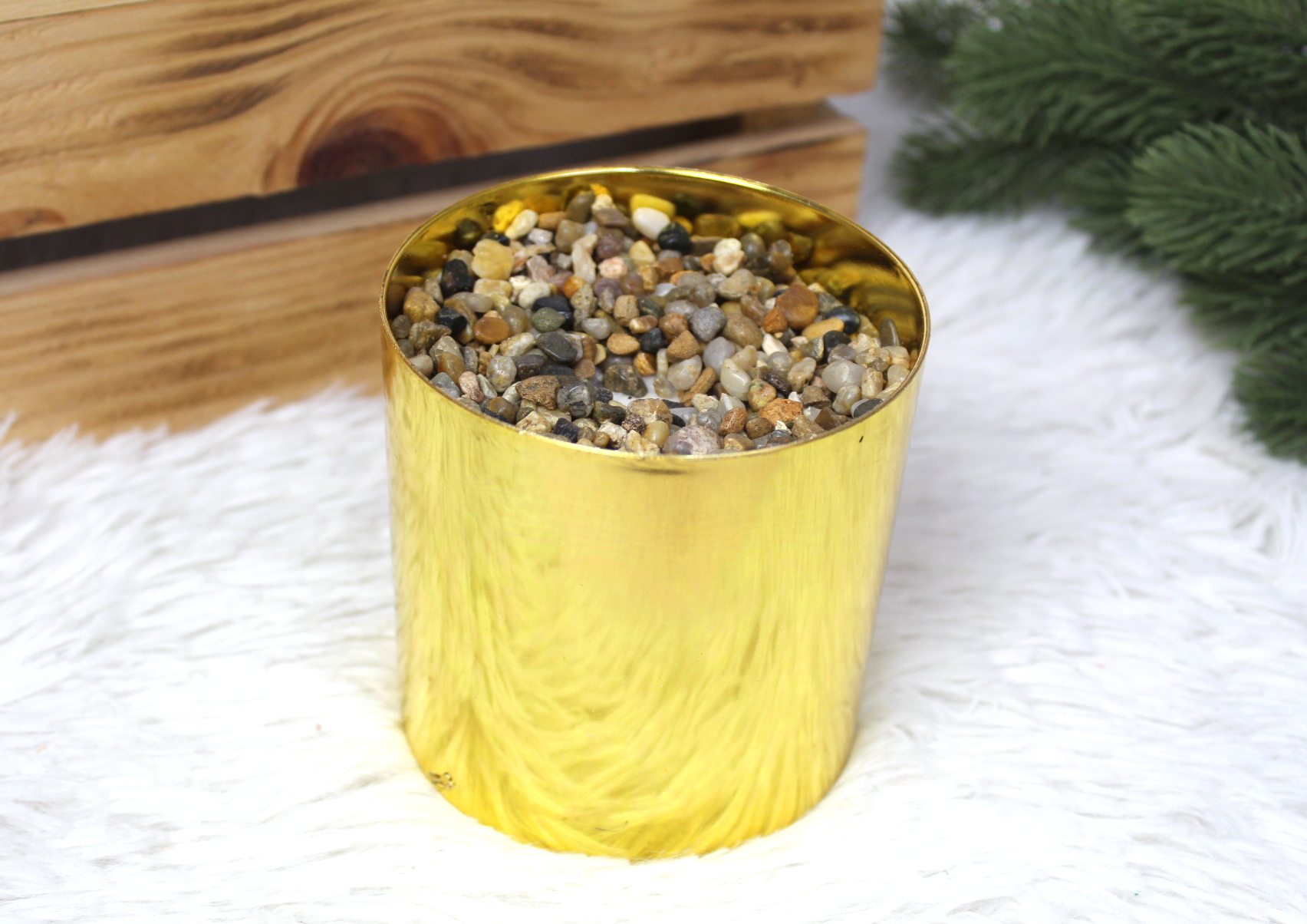 l Osłonka, doniczka dekoracyjna z kamykami i styropianem ZŁOTA plastik 10x10 cm